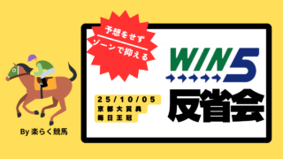 今週のWin5回顧 今週のWin5反省会(京都大賞典・毎日王冠) Win5買える馬(Win5勝ち馬の82%を占める馬)消せる馬(過去1年間のWin5対象レースで勝率2%)で絞り少点数で帯封を目指す「予想をせずゾーンで抑えるWin5」今週のWin5(京都大賞典・毎日王冠)の反省会。的中票数4票でも買える馬でWin4 2025.10.08 今週のWin5回顧