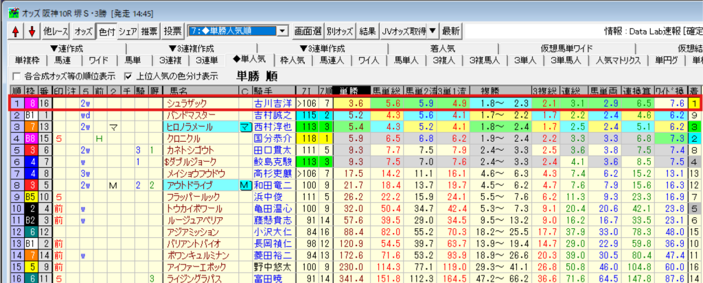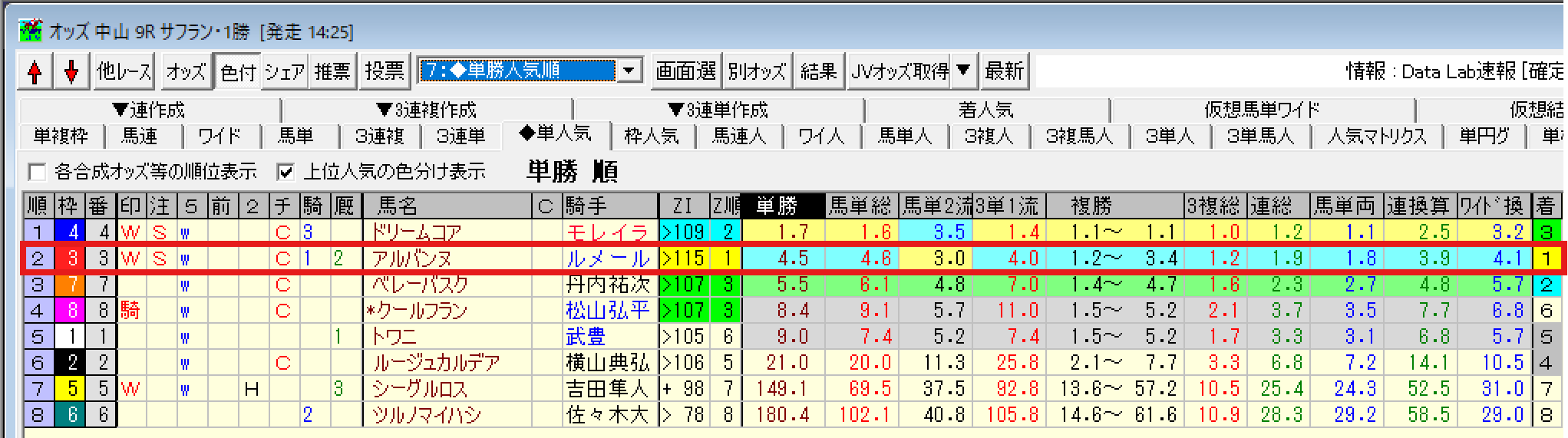 買える馬データは単勝人気と組み合わせて本領を発揮するものなので、同時に見れるのが使い易いです。