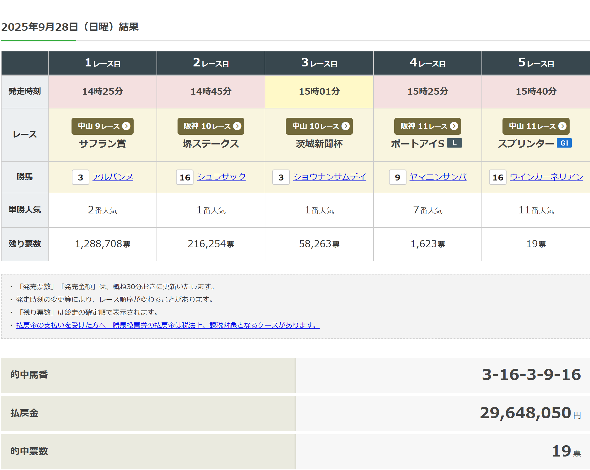 では、今週のWin5(スプリンターズステークス)を振り返っていきます。