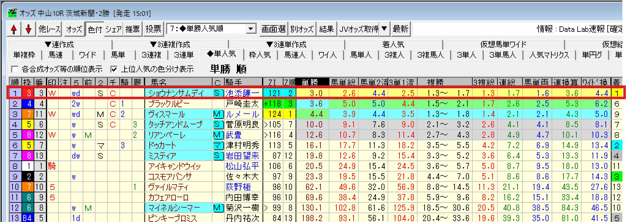 Win3 中山10R 茨城新聞杯 勝馬 1人気 ショウナンサムデイ