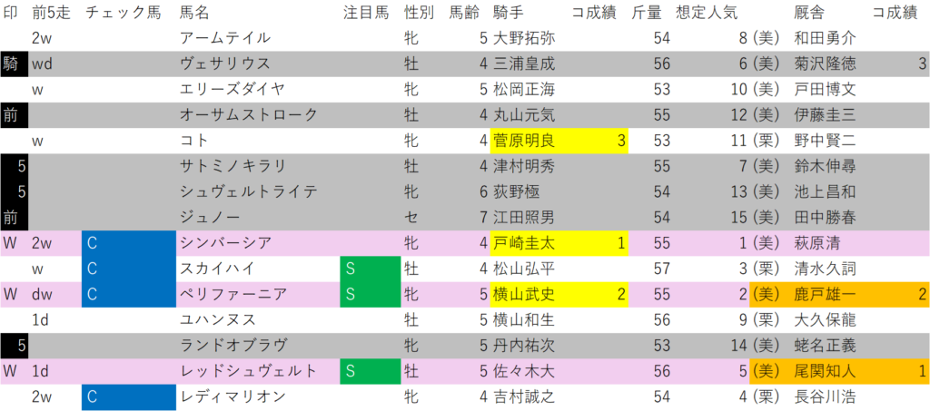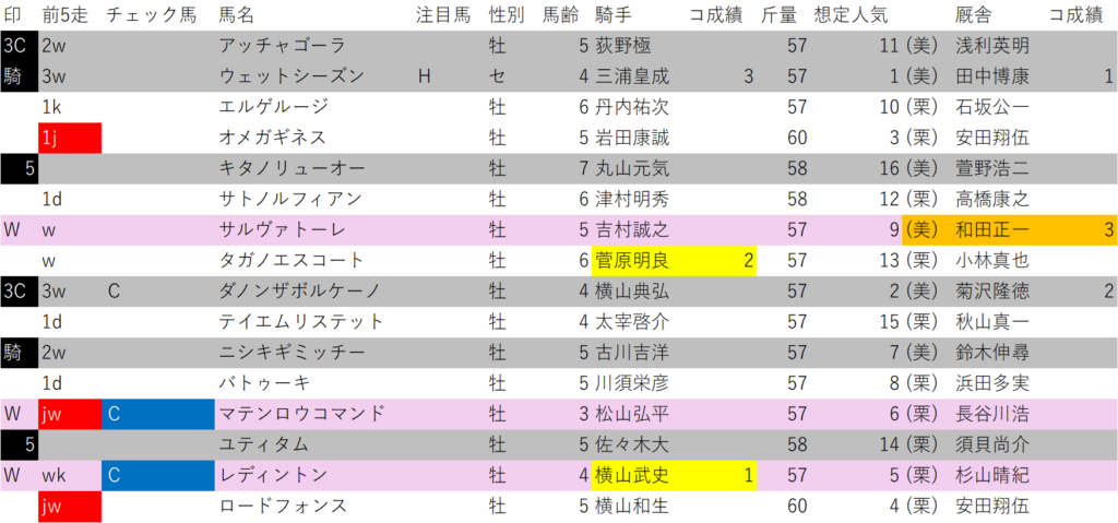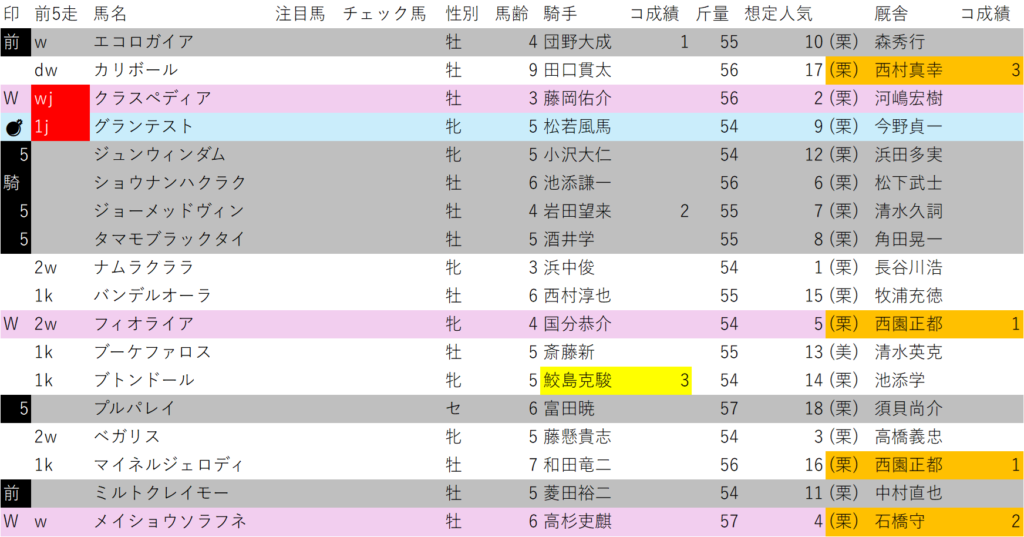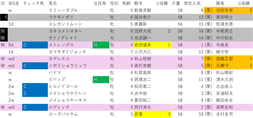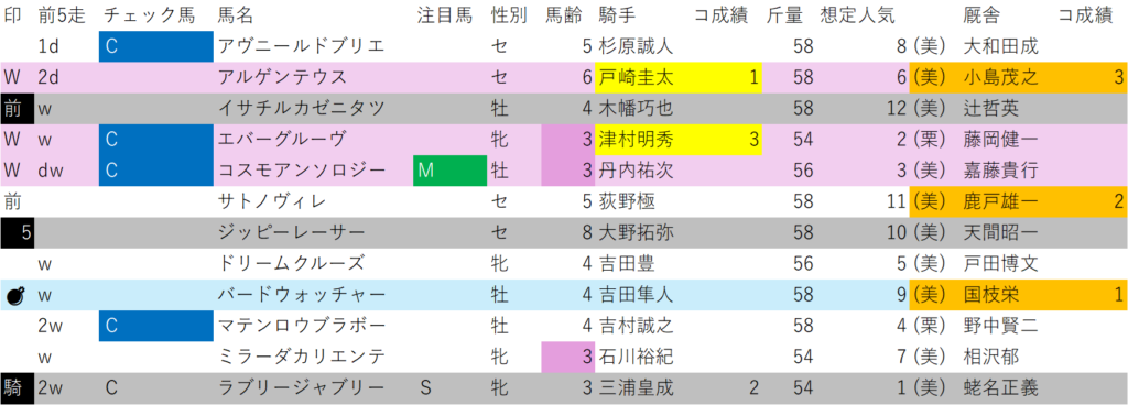 とは言え、近走冴えない成績の馬が多く出走表もグレーが多くカラフルではありません。