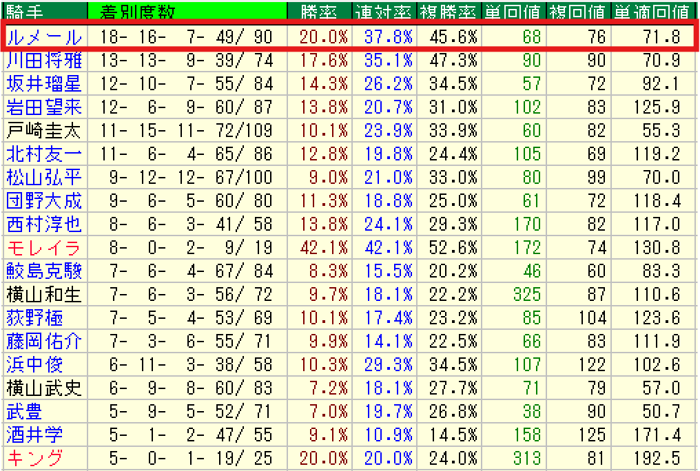 最近、Win5で好調の戸崎騎手が成績1位で高勝率。