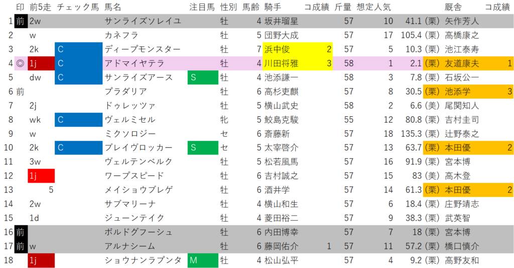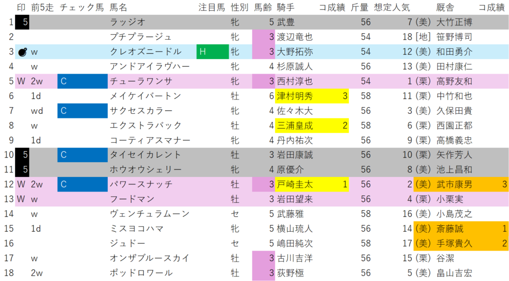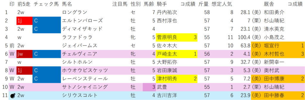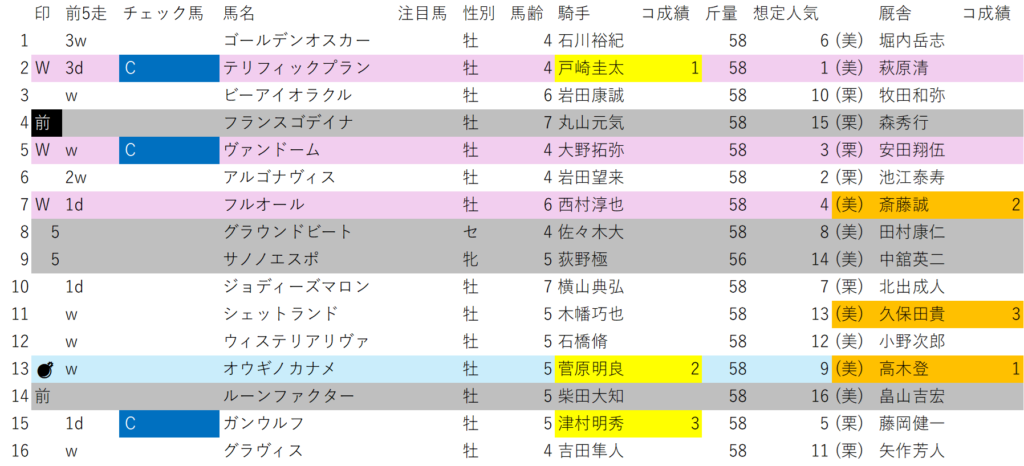 消せる馬が多く、出走表がグレーだらけで美しくない(笑)。