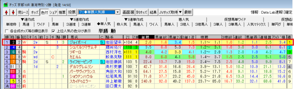 Win1 京都9R 清滝特別 勝馬 1人気 ジョイボーイ
