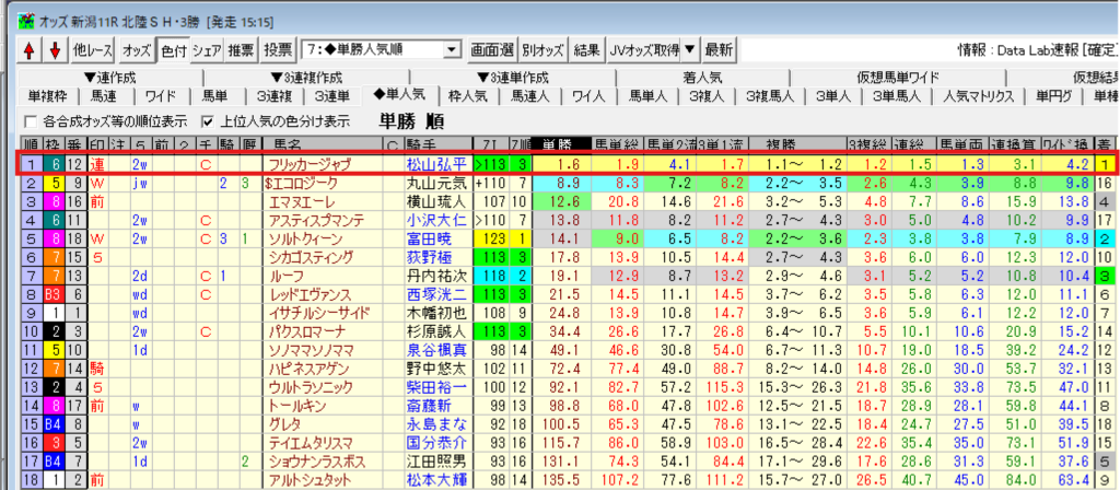 Win3 新潟11R 北陸ステークス 勝馬 1人気 フリッカージャブ