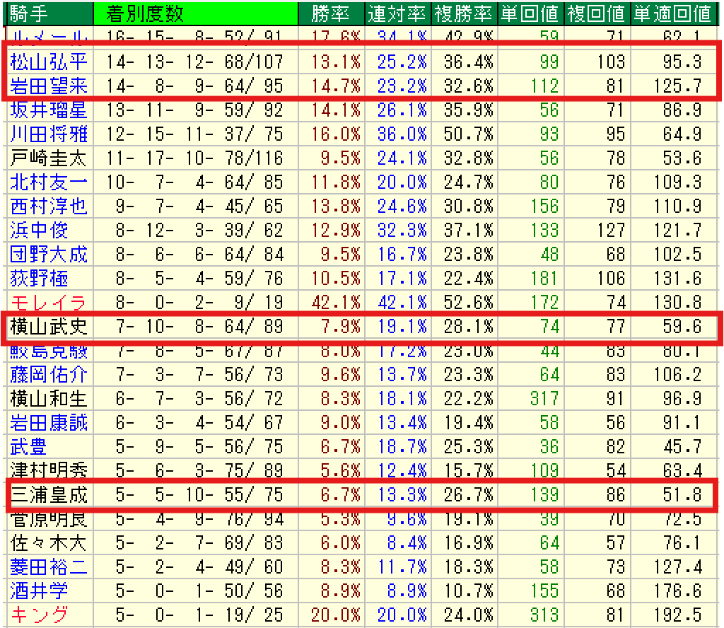 Win5 富士ステークス ガイアフォース 当コース騎手別成績3位