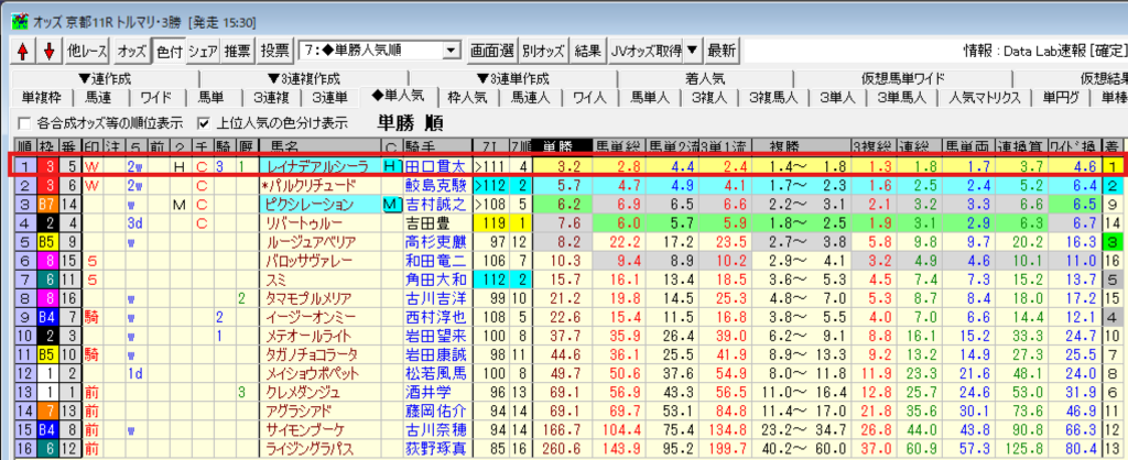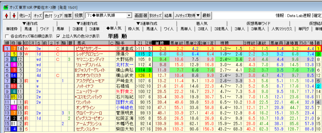 買える馬データは単勝人気と組み合わせて本領を発揮するものなので、同時に見れるのが使い易いです。