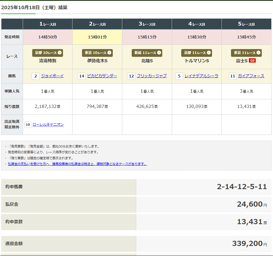 では、今週のWin5(富士ステークス)を振り返っていきます。
