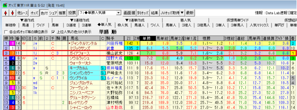 Win5 東京11R 富士ステークス 勝馬 3人気 ガイアフォース