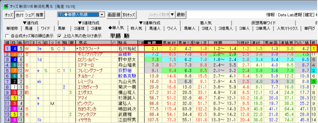 Win3 新潟11R 新潟牝馬ステークス 勝馬 1人気 カネラフィーナ