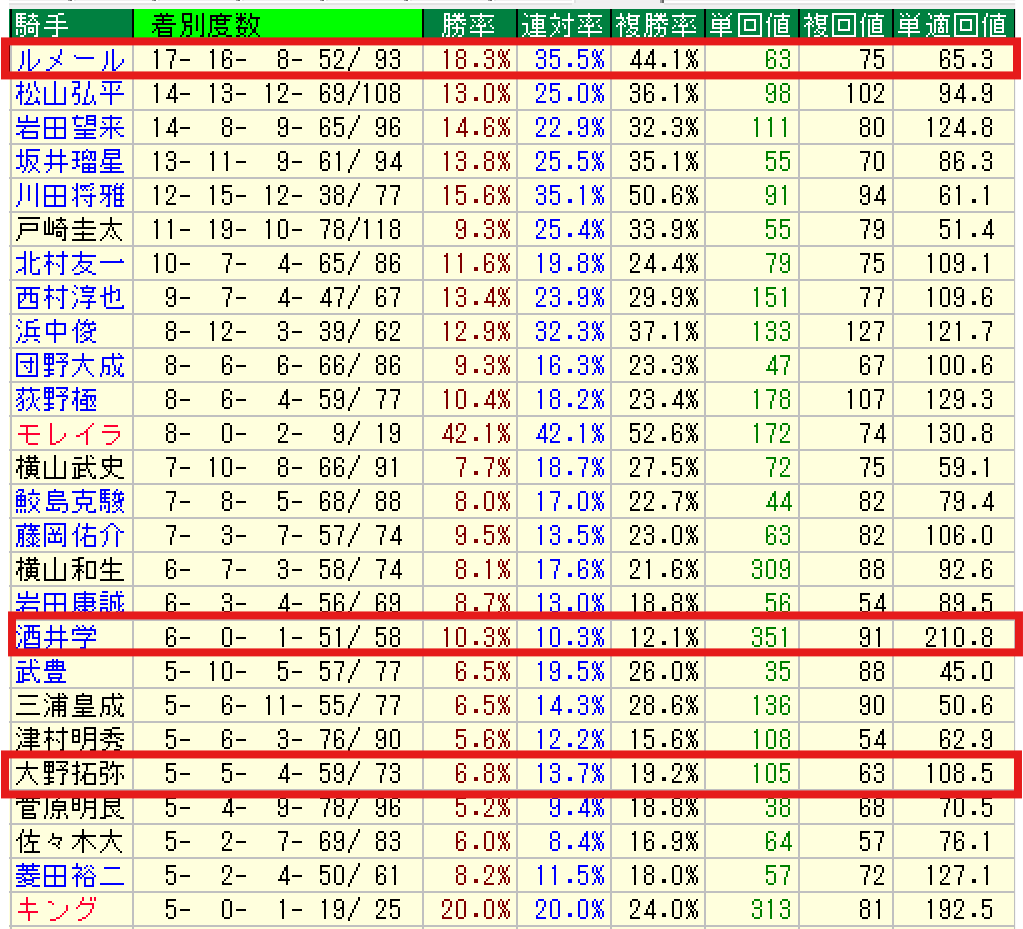 ルメール騎手は勝利して、勝数を伸ばしトップを継続。