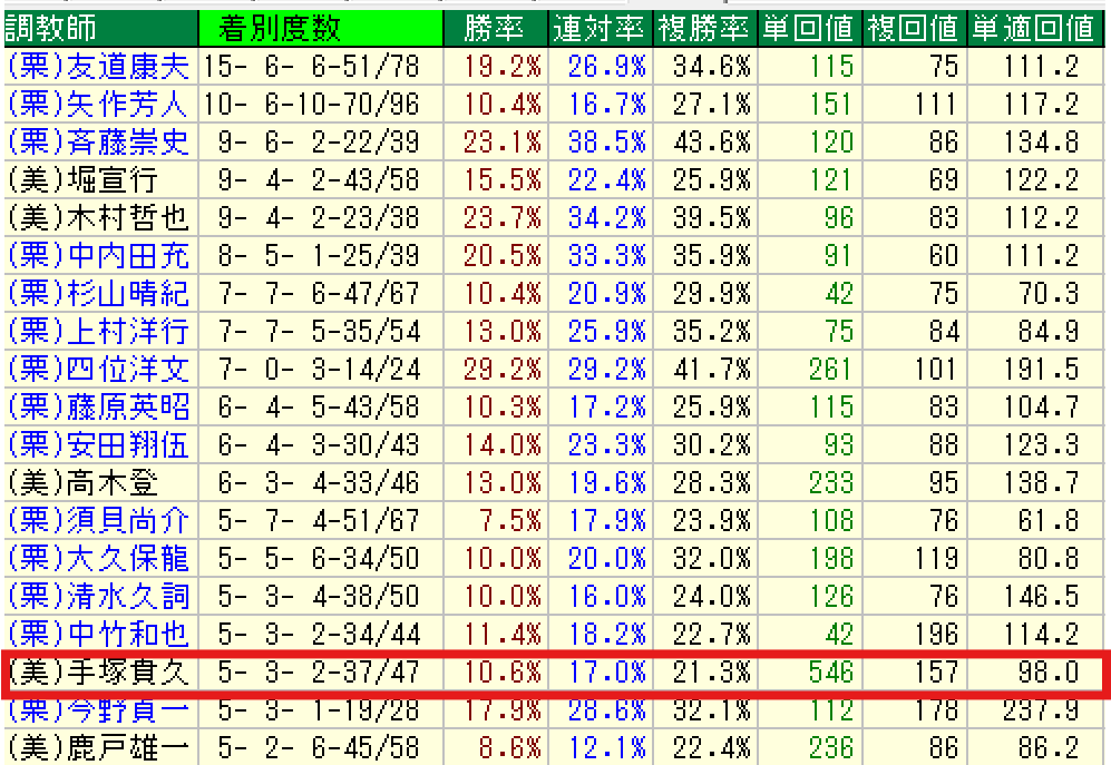 今週は、ランキング入り厩舎の勝利はありませんでした。