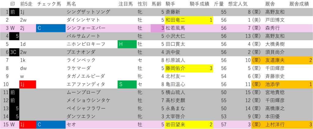 シンフォエバーは高勝率の3歳馬であり、前走の中京記念を逃げて僅差の2着。