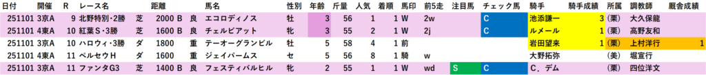 前回(2025年11月1日)のWin5を買える馬データ、消せる馬データで簡単に振り返ります。