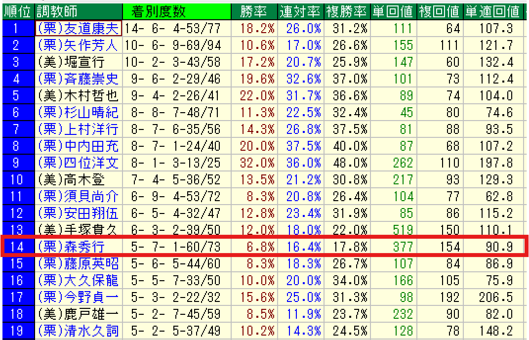 というか、ランキング常連厩舎なので、戻ってきた印象。