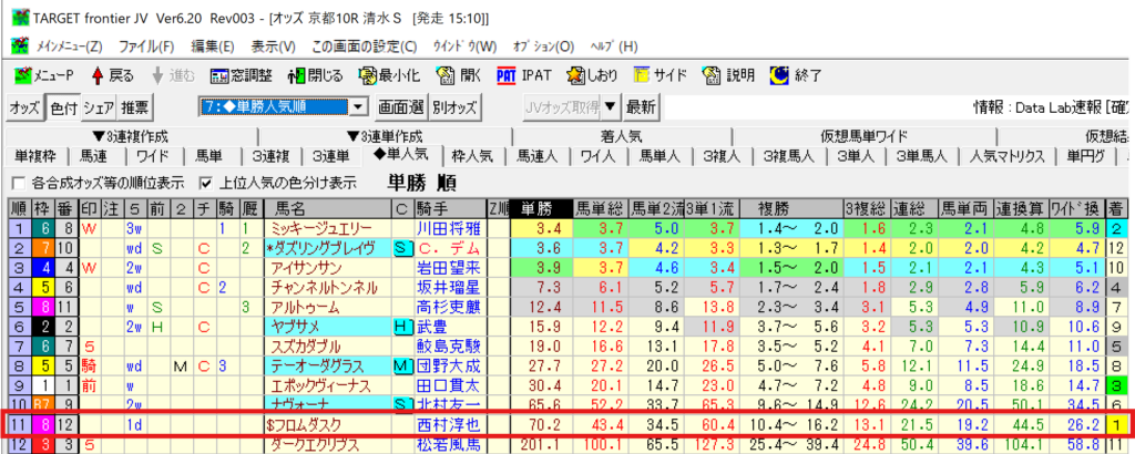 Win2 京都10R 清水ステークス 勝馬 11人気 フロムダスク