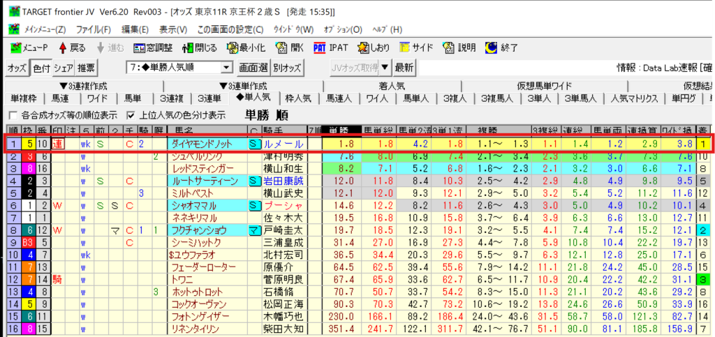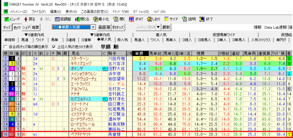 買える馬データは単勝人気と組み合わせて本領を発揮するものなので、同時に見れるのが使い易いです。