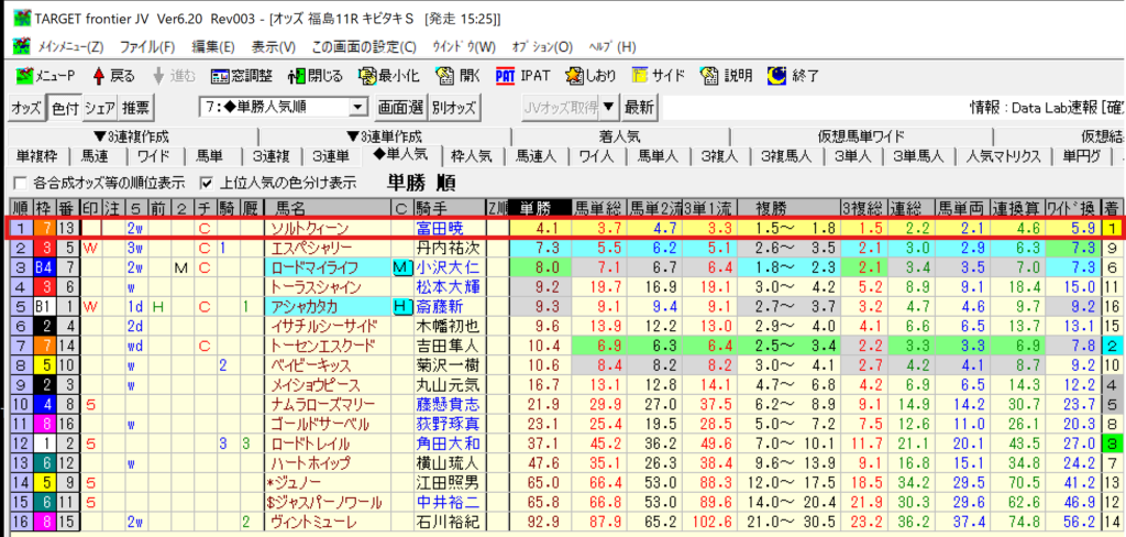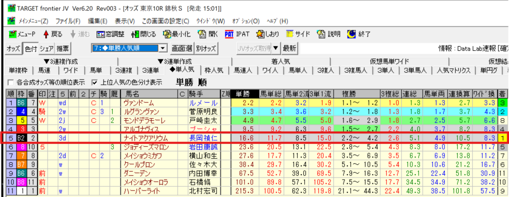 この画像はTarget fronteier JVの単勝人気順画像です。