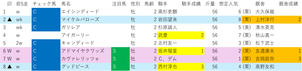 先週の京王杯2歳ステークスと違い、距離は本番と同じであり、関西の有力馬が集まるレース。