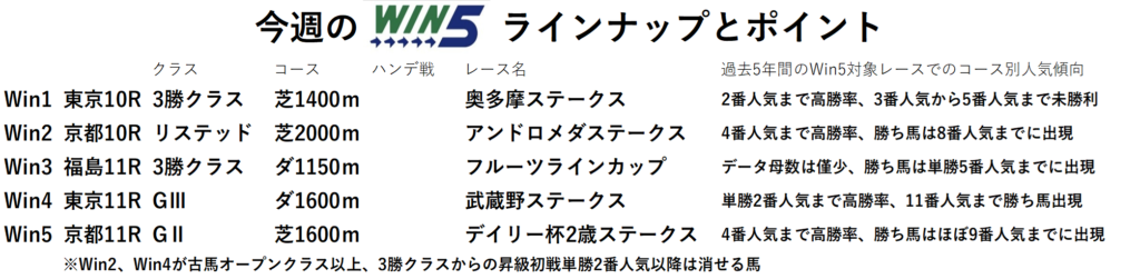 今回のWin5のラインナップとポイントを紹介していきます。