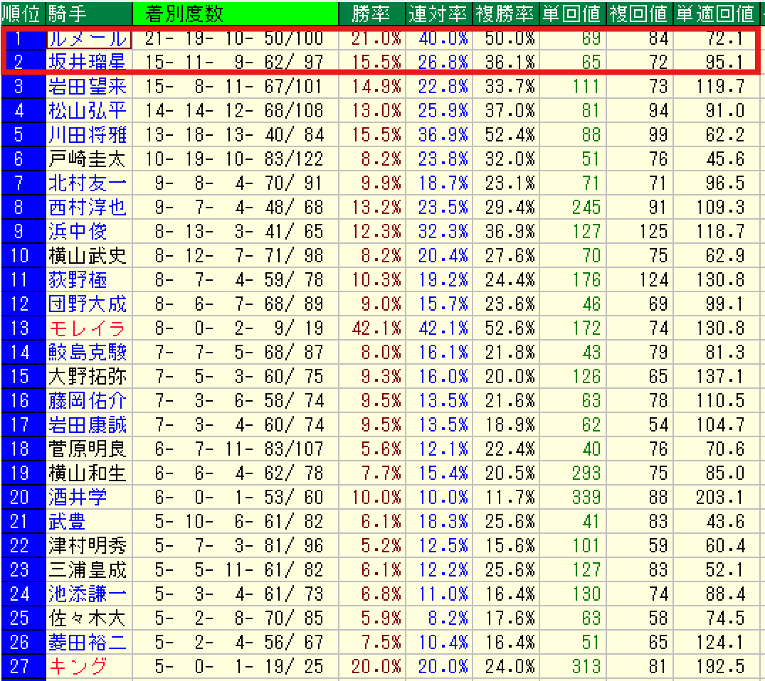 坂井瑠星騎手は高勝率で要警戒。