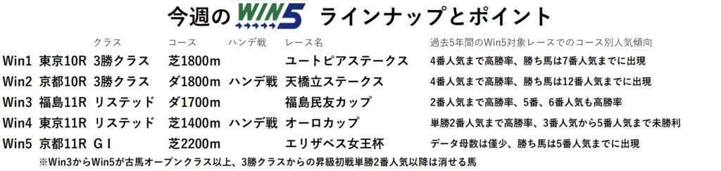 今回のWin5のラインナップとポイントを紹介していきます。