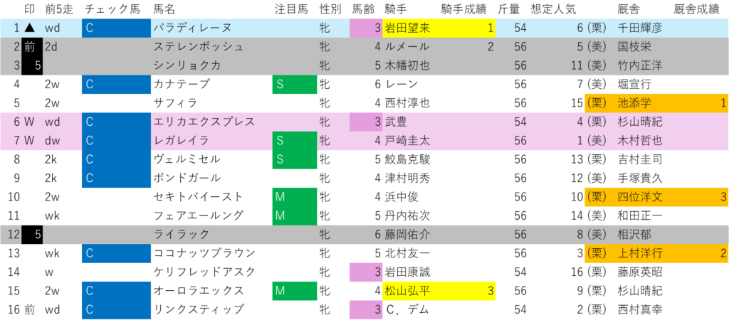 ▲は1頭のみで、パラディレーヌを推奨します。