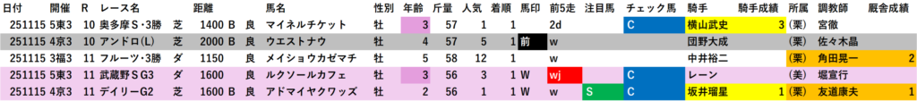 前回(2025年11月15日)のWin5を買える馬データ、消せる馬データで簡単に振り返ります。