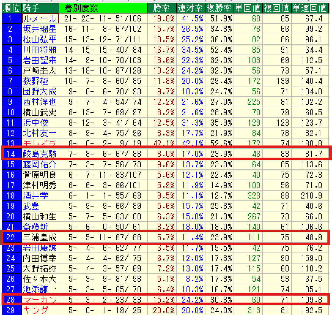今回は高杉吏麒、鮫島克駿、三浦皇成騎手が該当します。