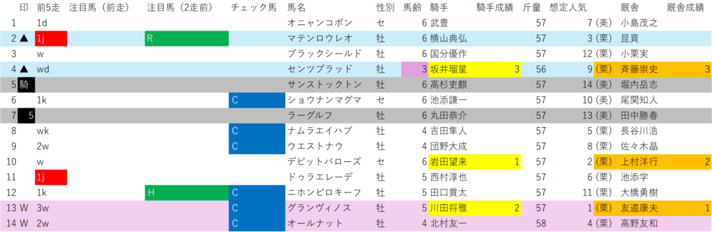 このレースのみで施行されるコース。勝ち鞍のある石橋脩騎手のみ出走表に反映させます。