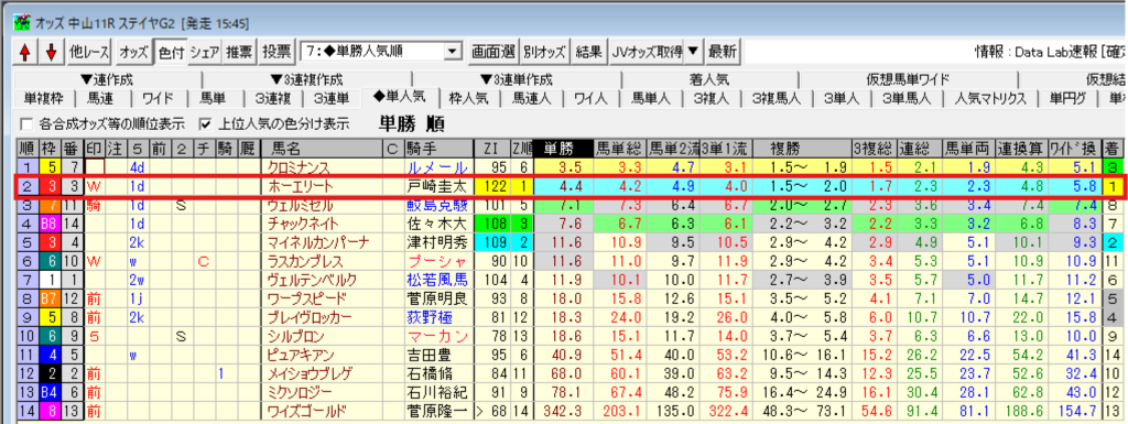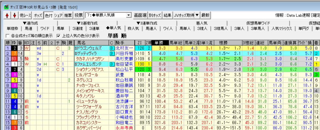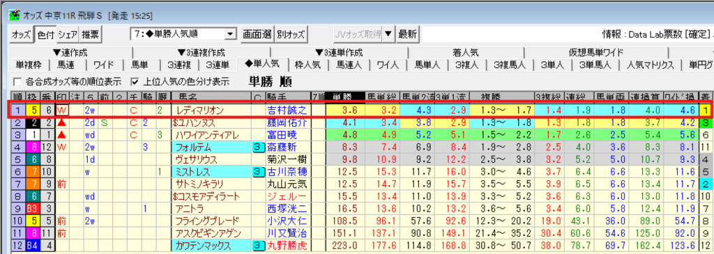 買える馬データは単勝人気と組み合わせて本領を発揮するものなので、同時に見れるのが使い易いです。
