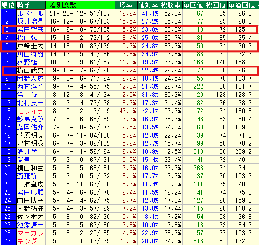 横山武史騎手も勝利し、堅い回は上位騎手が堅め勝ちします。
