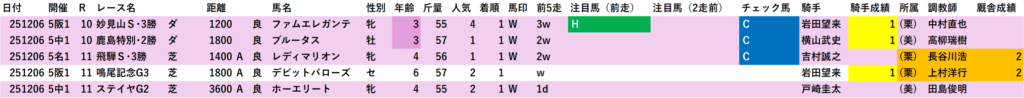 しかし、タカネノハナコサンを消せる騎手で消せた為に、ファムエレガンテを選べたとも言えます。