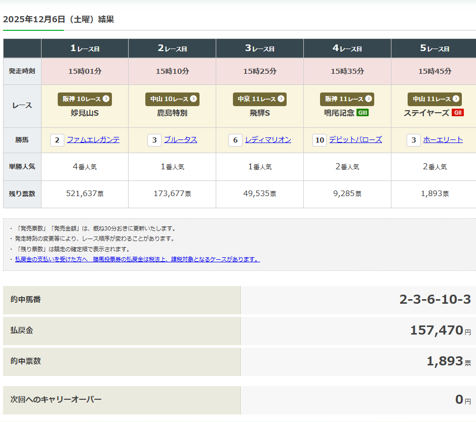 では、今回のWin5(鳴尾記念・ステイヤーズステークス)を振り返っていきます。