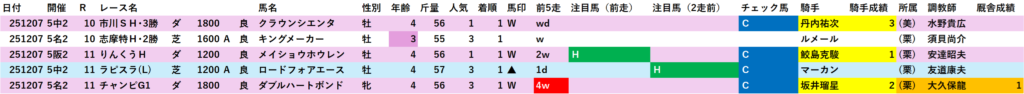 前回(2025年12月7日)のWin5を買える馬データ、消せる馬データで簡単に振り返ります。