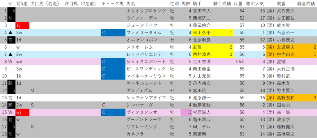 年末のこの時期にWin5上位厩舎が出走、先程の騎手のラインナップが頷けます。