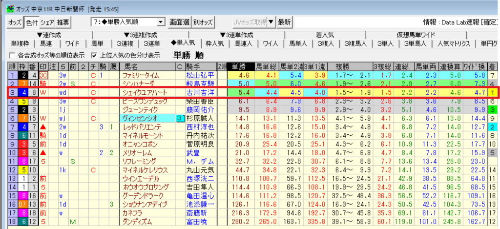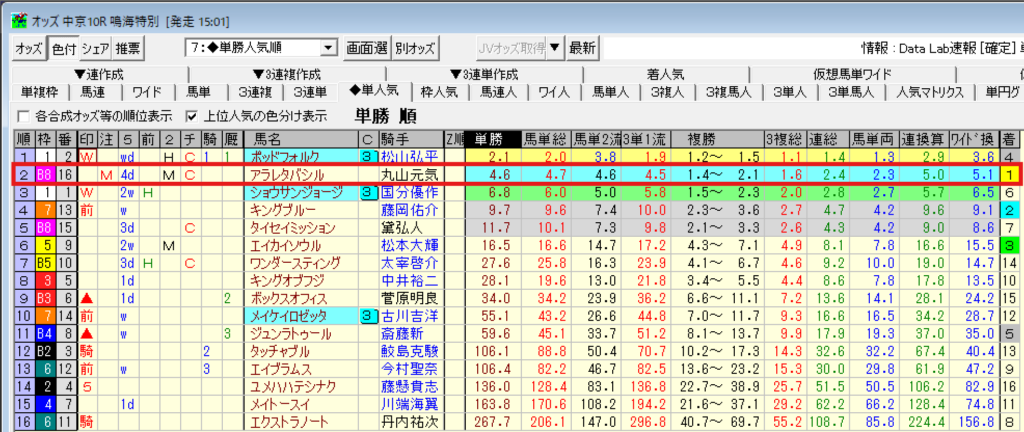 買える馬データは単勝人気と組み合わせて本領を発揮するものなので、同時に見れるのが使い易いです。