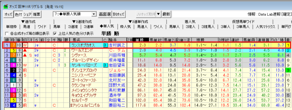 Win3 阪神11R リゲルステークス 勝馬 1人気 ランスオブカオス