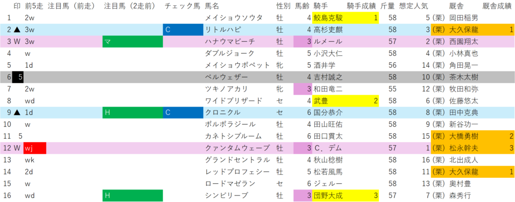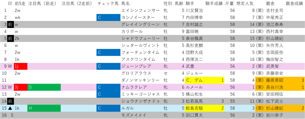 前走がオープンクラスが1頭、リステッド、GⅡが各2頭、GⅢが3頭と8頭全頭がオープンクラス以上。