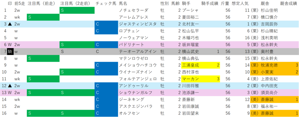 でマーカーしているのが、消せる馬です。