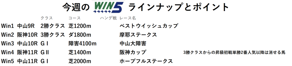 今回のWin5のラインナップとポイントを紹介していきます。
