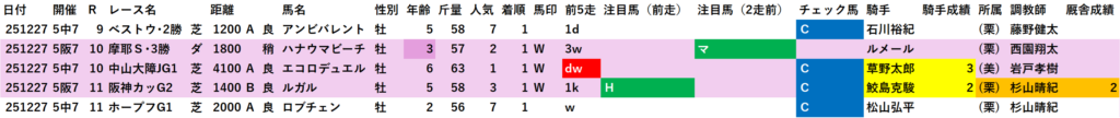 前回(2025年12月27日)のWin5を買える馬データ、消せる馬データで簡単に振り返ります。
