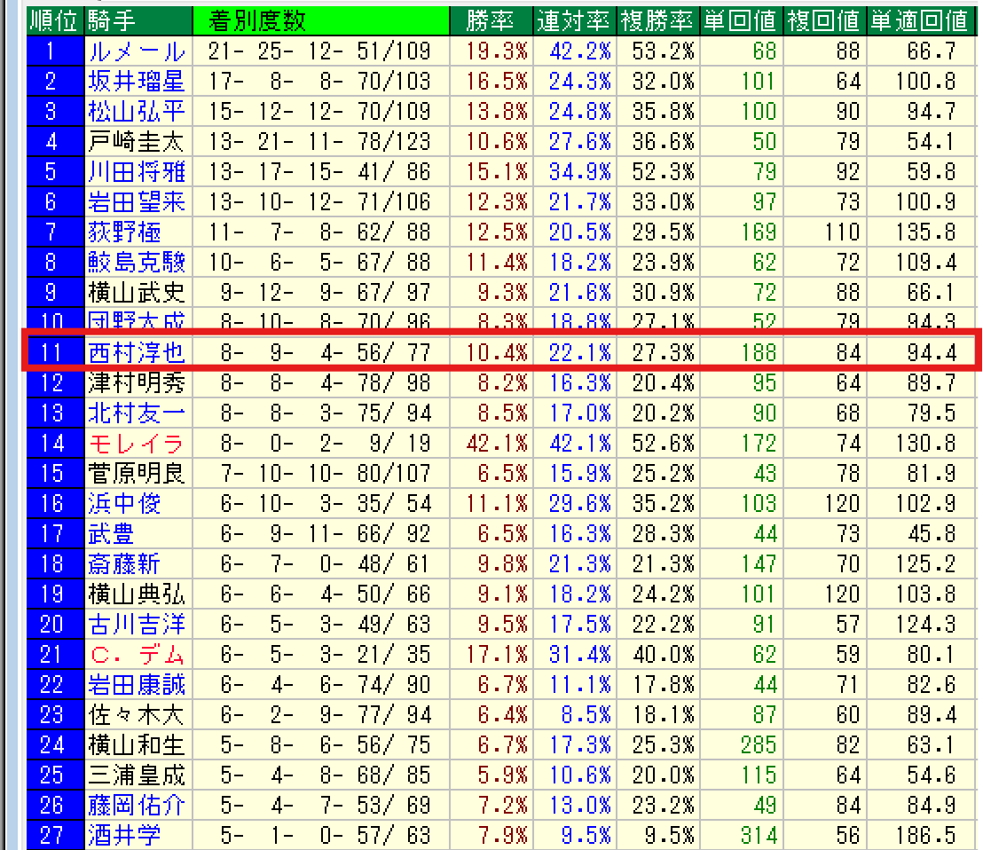 今回は西村淳也騎手が該当します。