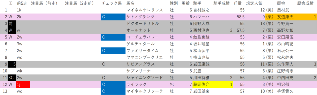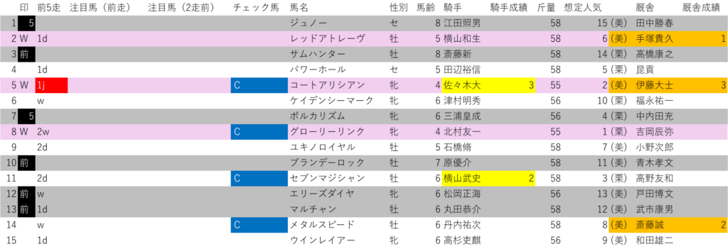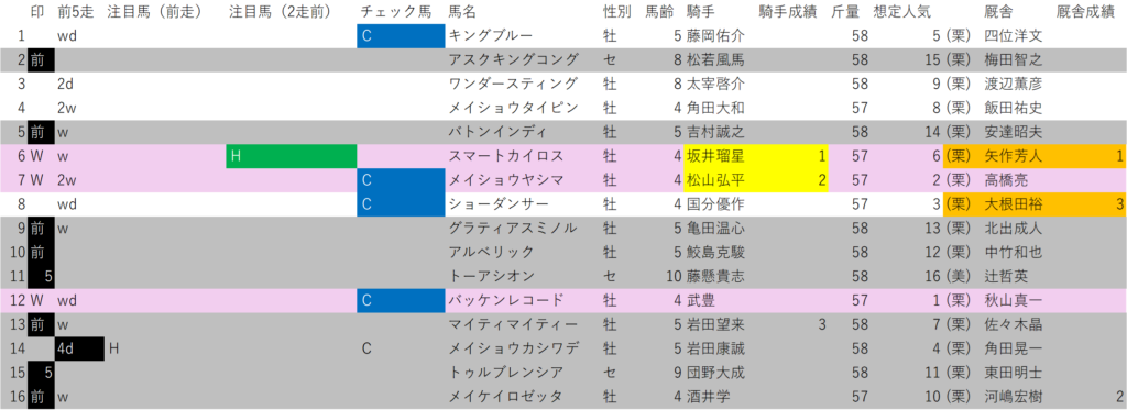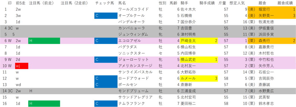 オープンクラスなのに、消せる馬が少ないレアなケース。