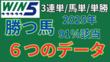 6つの買える馬、4つの消せる馬を図に現したもので、2025年1年間のWin5対象レースの勝ち馬の91%を買える馬データで的中させております。