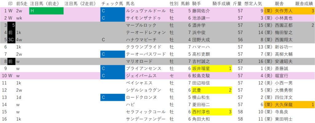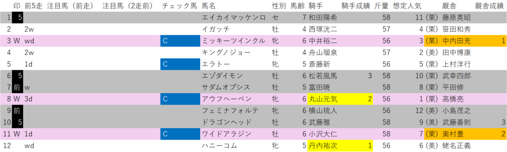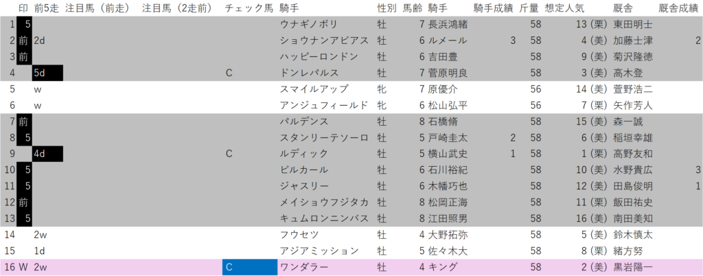 ショウヘイは、前5走高勝率パターンで、想定人気を見る前に印を打ちました。