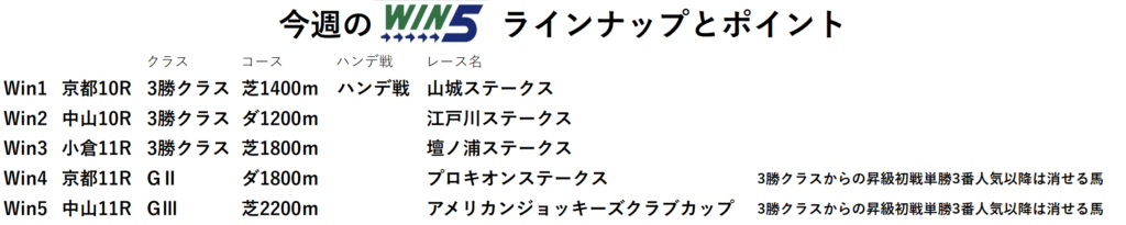 今回のWin5のラインナップとポイントを紹介していきます。