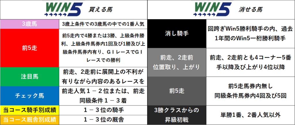 このデータを使い、Win5各レースの買い目を絞っていきます。