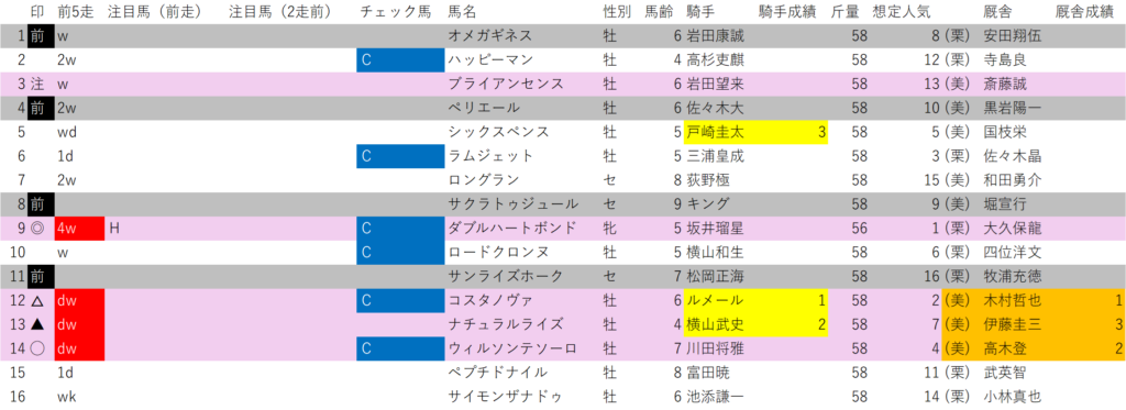 ここからは、私がWin5の予想で使用しているデータである「買える馬」「消せる馬」を使用していきます。