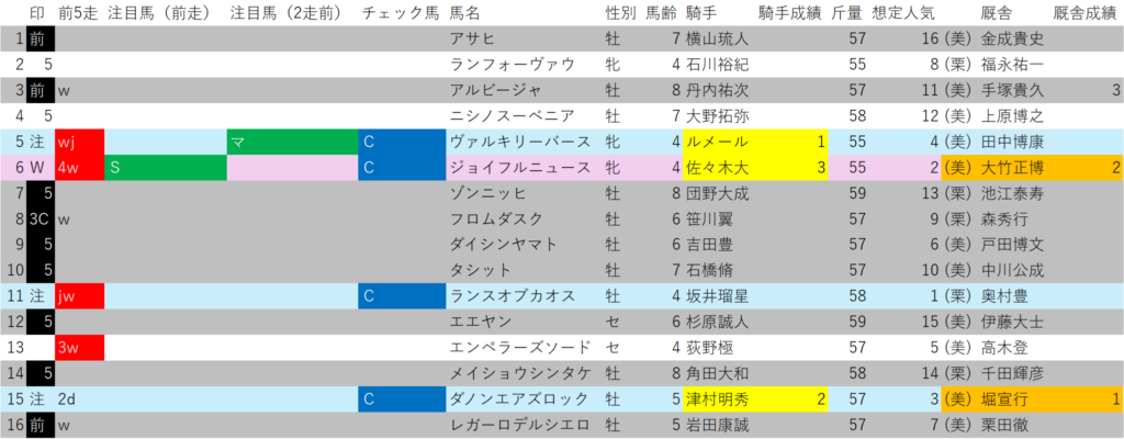 以上のデータから考えられるのは、オープンクラス以上が4レース、条件戦が1レースでハンデ戦が2レースということは、荒れる臭いがプンプンするかなり危険な番組編成。
